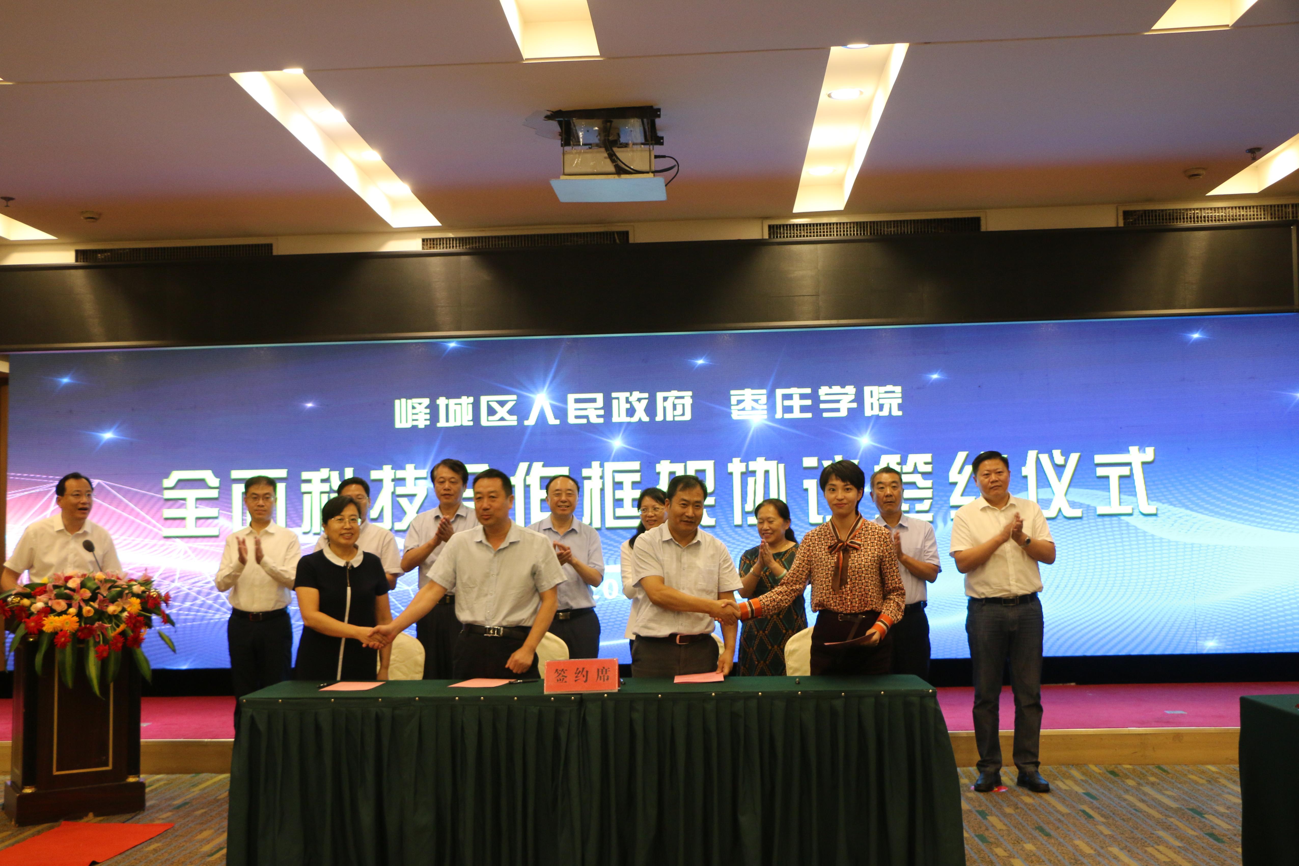 光电工程学院与古邵镇、生命科学学院与榴园镇、食品科学与制药工程学院与阴平镇分别签署框架合作协议。化学化工与材料科学学院与峄城区化工产业综合服务中心签署了峄城化工产业园技术信息服务战略合作框架协议。仪式还进行了具体项目的签约。