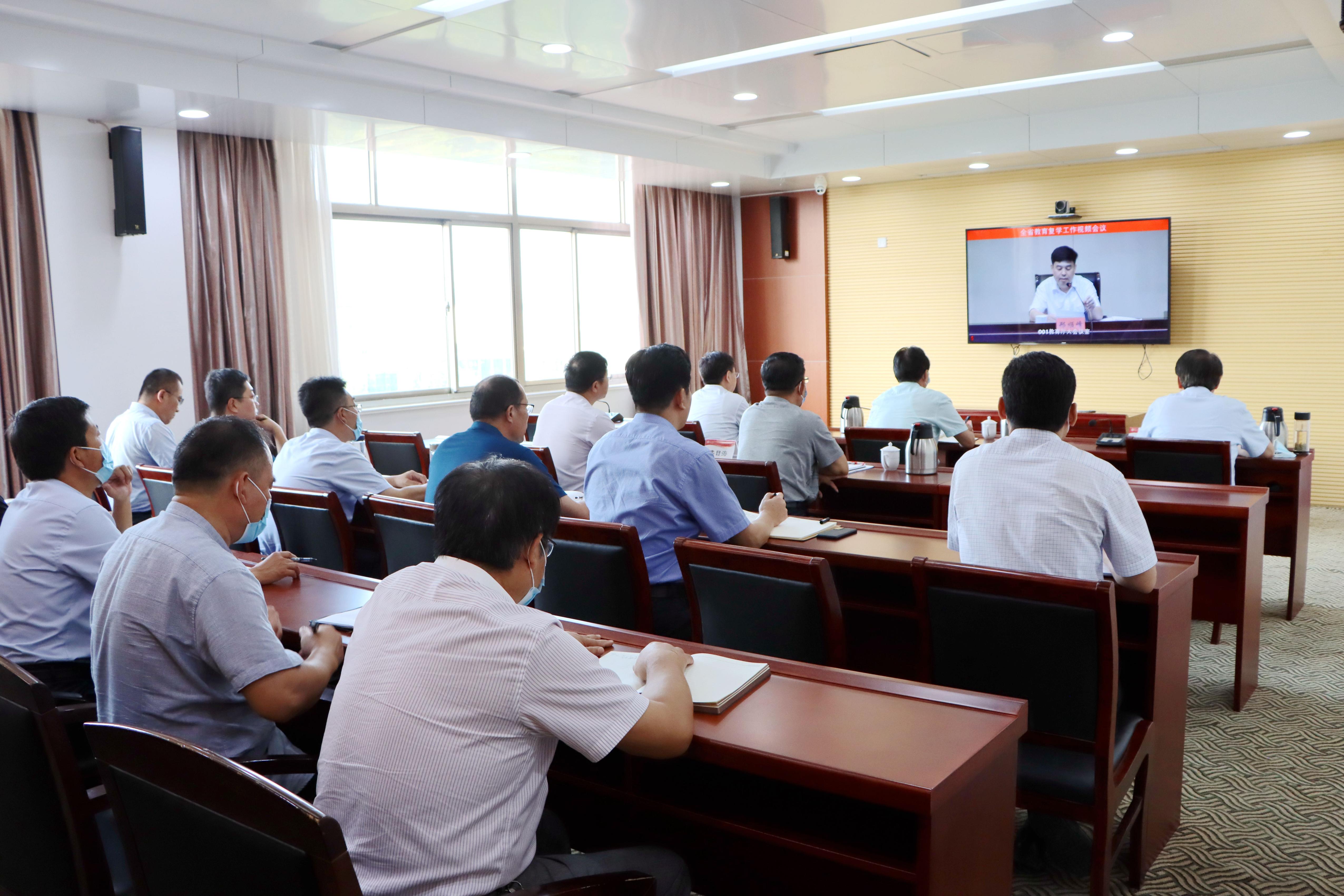 8月28日下午,省委统筹疫情防控和经济运行工作领导小组(指挥部)办公室教育复学组召开全省教育复学工作视频会议,动员部署全省学校秋季学期开学和疫情防控工作。省教育复学组组长,省委教育工委常务副书记,省教育厅党组书记、厅长邓云锋出席会议并讲话,省教育厅总督学邢顺峰主持会议。我校在综合楼七楼视频会议室设立分会场,校领导李东、曾宪明、明清河、李目海,枣庄科技职业学院党委副书记、院长谷道宗,校办公室、学工处、教务处、后勤服务处、保卫处负责人,部分二级学院党总支书记参加会议。