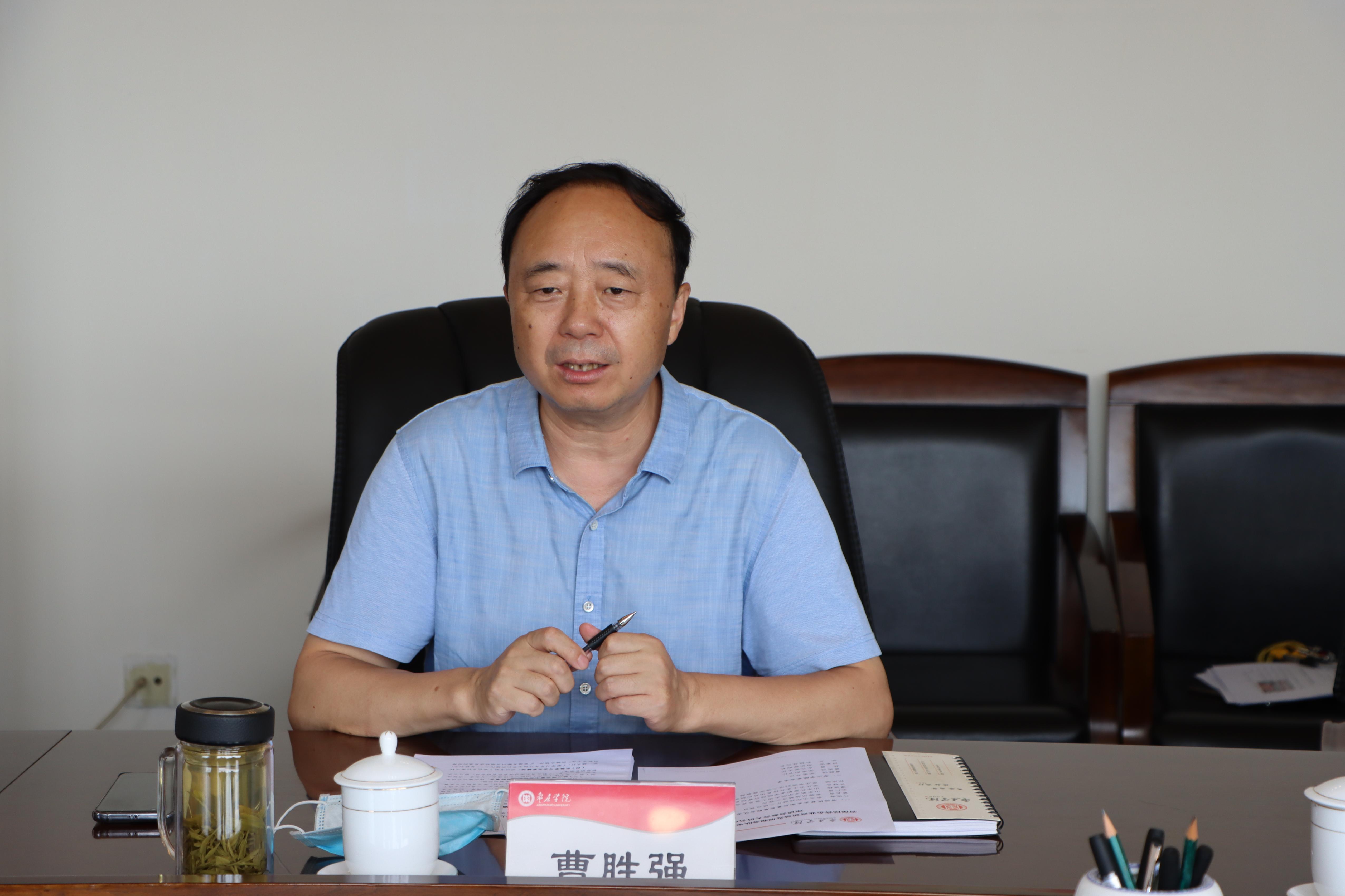 曹胜强对枣庄一队的到来表示欢迎,对枣庄一队勤勉务实的工作态度和取得的工作成绩给予高度评价。曹胜强强调,枣庄一队坚持高站位、为民服务,履职尽责、真抓实干,勇于担当、破解难题,创新思维、精准服务,助力企业发展提质,成绩骄人,希望枣庄一队继续团结一心、创新工作,确保圆满完成省委交给的各项工作任务。曹胜强表示,枣庄学院从师范专科学校起步,经过历届领导班子和教职员工的共同努力,现已发展成为具有62个本科专业的综合性大学,并在去年山东省分类考核中取得优秀等次。学校的发展改革与服务企业发展之间有诸多相通之处,希望枣庄一队经常来校交流,共同见证学校建设和发展成为国内知名的高水平应用型大学。