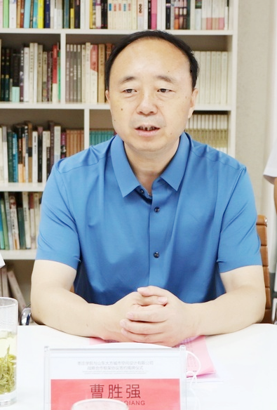 仪式上,曹胜强简要介绍了学校的办学定位、办学特色、人才培养、学科科研以及新校区建设等情况,并重点介绍了枣庄学院“123456”应用型人才培养模式的实践与探索。曹胜强指出,近年来,我校以建设国内知名的高水平应用型大学为指引,坚定不移推进转型发展、内涵提升,将“产教融合、协同育人”作为高素质应用型人才培养的重要路径,不断深化产教融合、校企合作方面的探索和实践,教育教学质量不断提升,得到了社会各界高度评价。党的十八大以来,习近平总书记高度重视文化产业发展工作,强调要推动文化产业高质量发展,健全现代文化产业体系和市场体系,以高质量文化供给增强人们的文化获得感、幸福感。希望我校和山东大方公司在前期友好合作的基础上,进一步加强学术与艺术交流,一起研发具有枣庄地方文化特色的文创项目,培养更多文化创意人才,全面深化产学研用一体化,促进教育链、人才链、产业链和创新链有机衔接,促进人才培养供给侧和文创产业需求侧要素全方位融合,为我校探索基于产教融合的应用型人才培养新路径积累成功经验,为枣庄市文化艺术建设做出更大贡献。