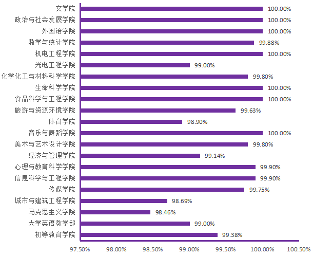 图6. 各院(部)6月3日线上学生上课率分布图