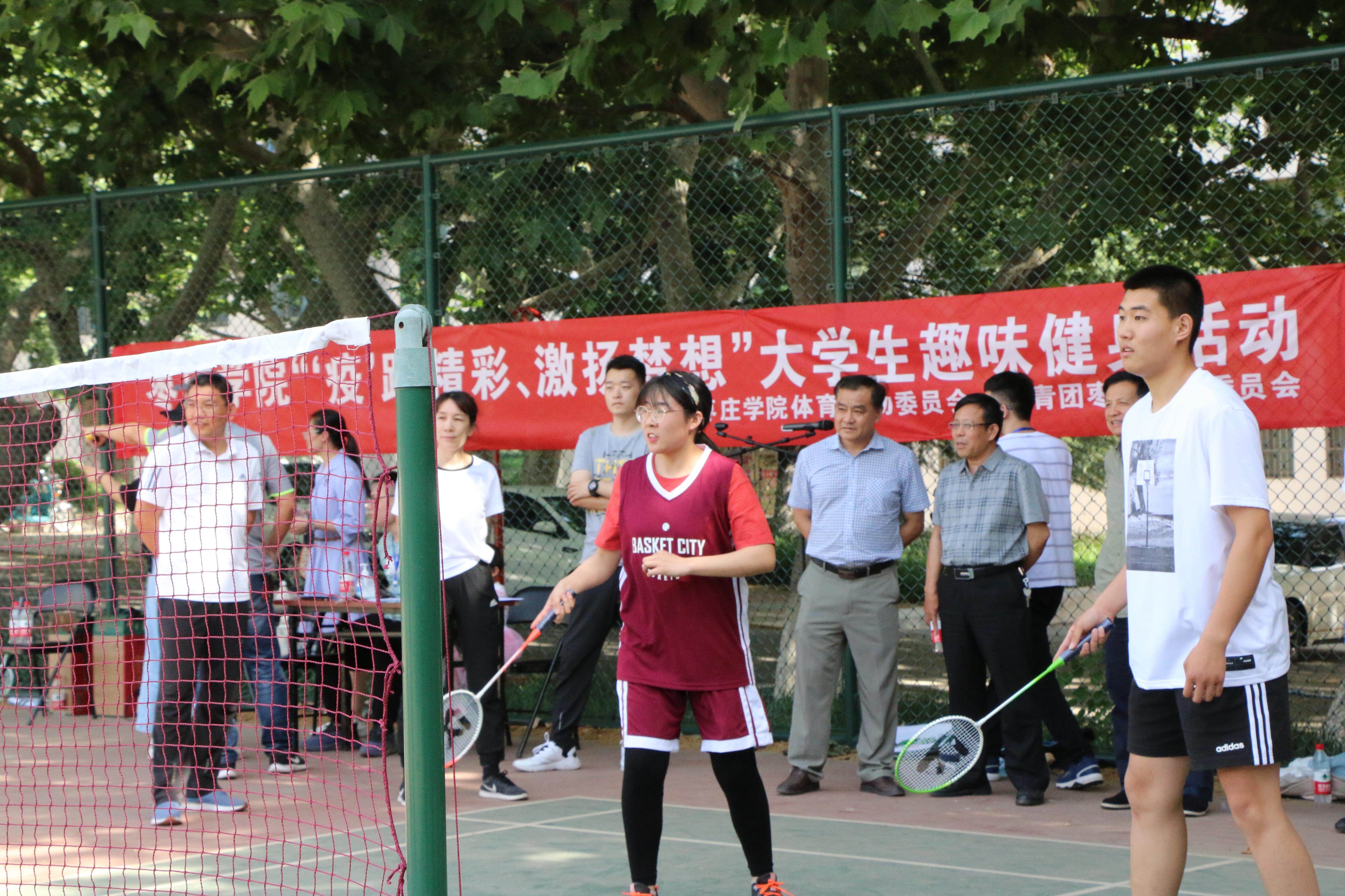为丰富广大返校学生的体育文化生活,增强其健身意识,促进身心健康,6月3日下午,由枣庄学院体育运动委员会与团委共同举办的大学生趣味健身活动在室外羽毛球场举行。副校长明清河、团委及体育学院负责人参加活动,来自各二级学院的14个代表队参加了比赛。