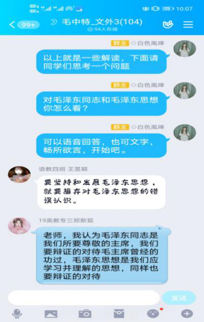 受疫情影响,学校推迟学生返校。根据教育部、省教育厅“停课不停学”的总要求,学校要求教师全面启动线上教学,马克思主义学院也全面开始了线上教学工作的部署与安排,毛泽东思想和中国特色社会主义理论体系概论教研室制定了详细的教学计划与实施方案。转眼间,线上教学已经开展近三个多月。从最初的困惑、迷茫到逐渐适应、习惯,并收获满满。下面分享一下马克思主义学院毛特教研室傅秀云老师的线上教学体验。