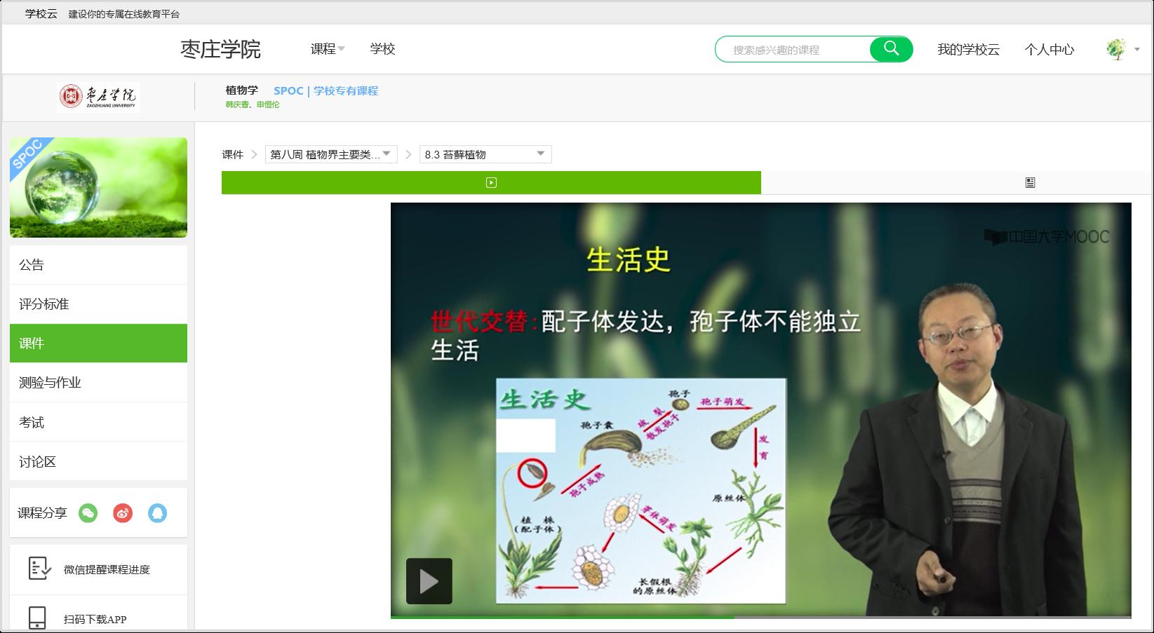 在学校提供的丰富的线上教学资源中,选择了中国大学慕课平台,依托华中农业大学姚家玲教授的《植物学》创建了异步SPOC课程。借助优秀的线上资源,让学生们进行课前自主学习。课程采用“雨课堂+ MOOC”平台已有课程督学、导学、进行学情数据管理。