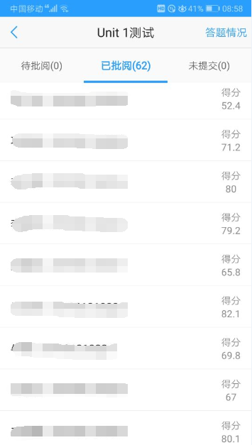 为帮助学生进一步明确并巩固每个单元的学习重点及难点,检测自己的掌握情况,借助“U校园”平台上的测试功能对每个单元都进行阶段性考核,并根据“U校园”的统计数据对答题正确率较低的知识点进行回顾重复以及进一步强调。