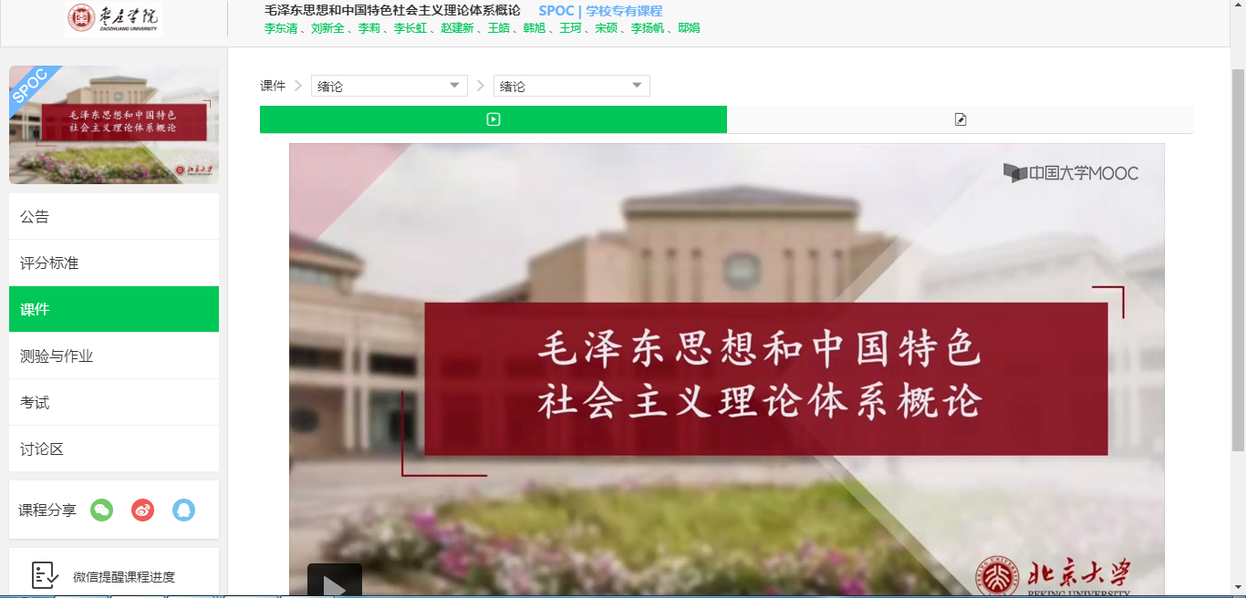 《毛泽东思想和中国特色社会主义理论体系概论》课程作为思想政治理论课,是大学的公共必修课,是落实立德树人根本任务的关键课程。在疫情期间开展线上教学是教学模式的一次新尝试,作为思政课教师务必提高政治站位,要充分发挥自身的积极性、主动性和创造性,做好正式开课前的系列安排。在教育部提出了“停课不停教、停课不停学”的号召后,学校高度重视,在教务处的统一安排下,马克思主义学院开始了授课前的各项准备。概论课教学团队综合分析了教学模式和各教学平台的试用情况,并根据本学科的教学特点,最终选择了中国大学MOOC这一教学平台。在考虑到我校开学时间节点后,概论课最终选择了北京大学专家团队的教学资源,在中国大学MOOC平台上开设异步SPOC。马克思主义学院教师王珂最终采用混合式线上教学模式,即“中国大学MOOC+慕课堂+时政热点+教学班QQ群”。