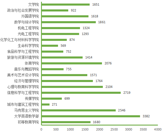 图5. 各院(部)5月19日线上授课学生数(人次)分布图