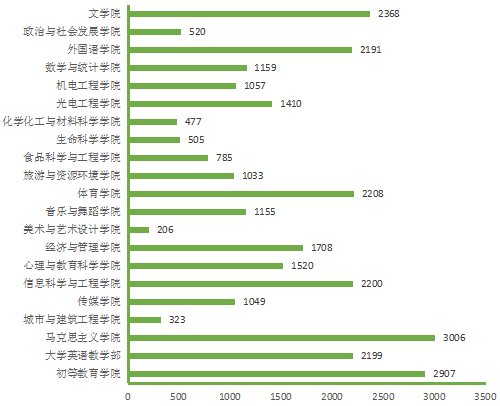 图5. 各院(部)5月8日线上授课学生数(人次)分布图