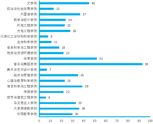 图4.各院(部)5月8日线上授课教师数(人次)分布图