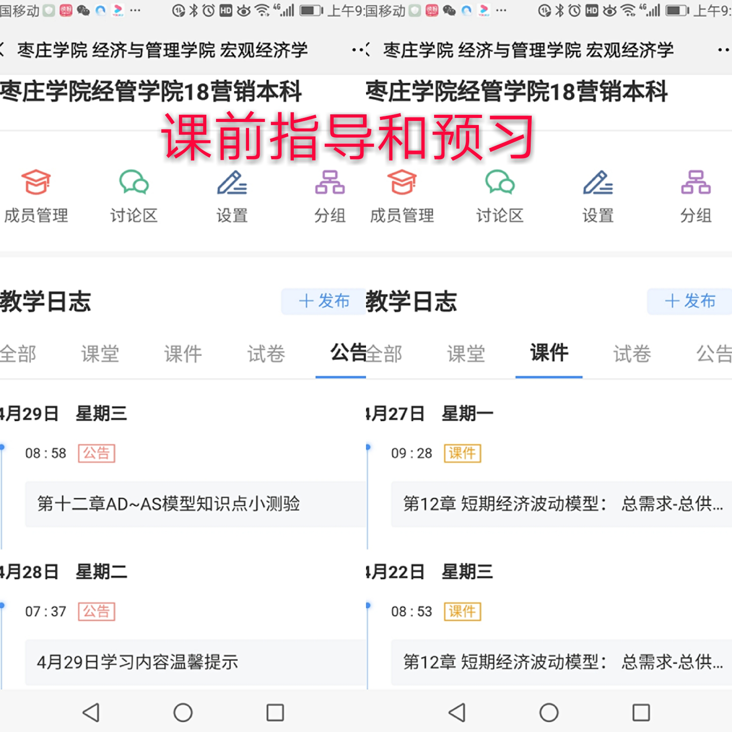 上课前发布课件和慕课视频,让同学们提前预习,与此同时发布公告,让同学们的预习能做到有的放矢,做到详略得当,重难点区分。