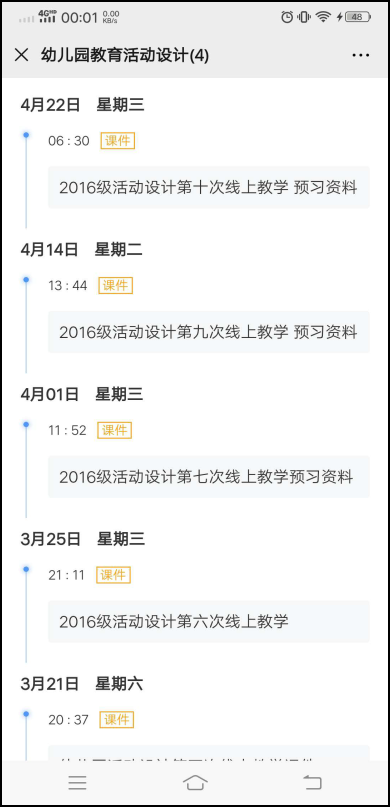 在每次上课前,陈老师都会将课件、知识点、课程时间分配、具体要求等提前发给学生,具体上课前一天再次沟通确认,以确保课程顺利进行。每堂课,陈老师都会提前30分钟进入网络课堂,把之前备课时的相关音频、视频资料发到微信群进行共享。通过雨课堂上传课前任务及课件资料,提醒学生课前预习,熟悉教学内容,基于课程实践的特点,发布课前要求,请学生课前思考,使线上教学更高效。通过后台数据及时查看学生预习情况,对未观看的学生及时在微信群提醒,督促学生按时认真完成。另外她每节课都会利用钉钉群发布上课通知,提前告知学生上课时间及教学任务,对于未阅学生可以通过免费钉钉电话或短信告知,以防学生忘记时间而耽误上课,确保到课率。
