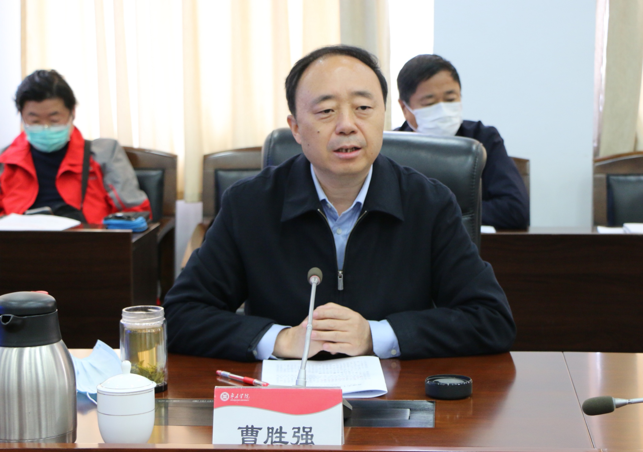 4月29日上午,我校在综合楼三楼会议室召开2020年重点工作攻坚突破部署会议。校党委书记曹胜强讲话,校领导李东、曾宪明、明清河、李目海、李丽清、路绪剑出席会议。全校各部门、学院主要负责人参加会议。会议由校长李东主持。