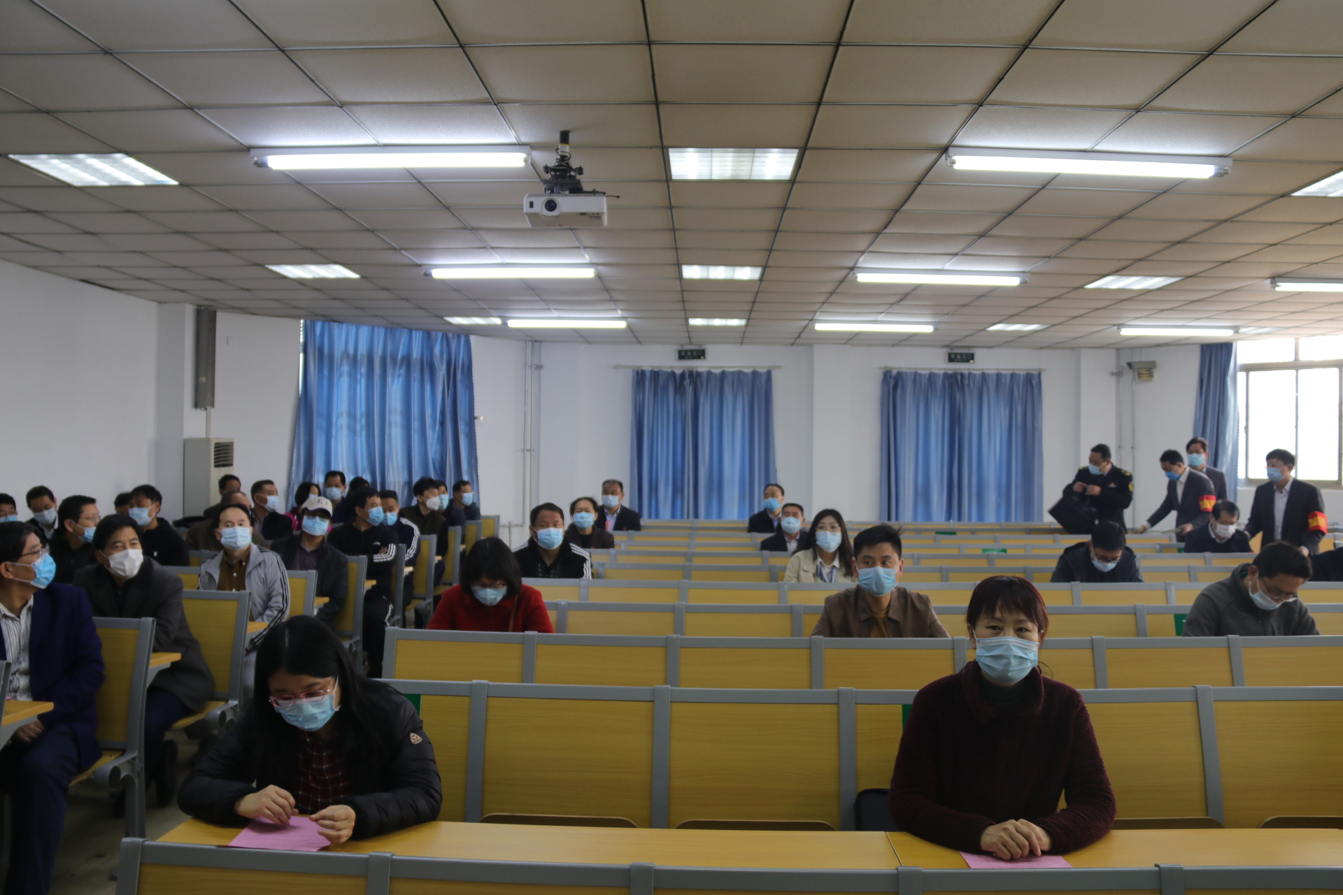 学校疫情防控和应急处置各工作组、相关部门疫情防控工作人员、全体辅导员参加演练。各部门负责人、二级学院党总支书记观摩演练。