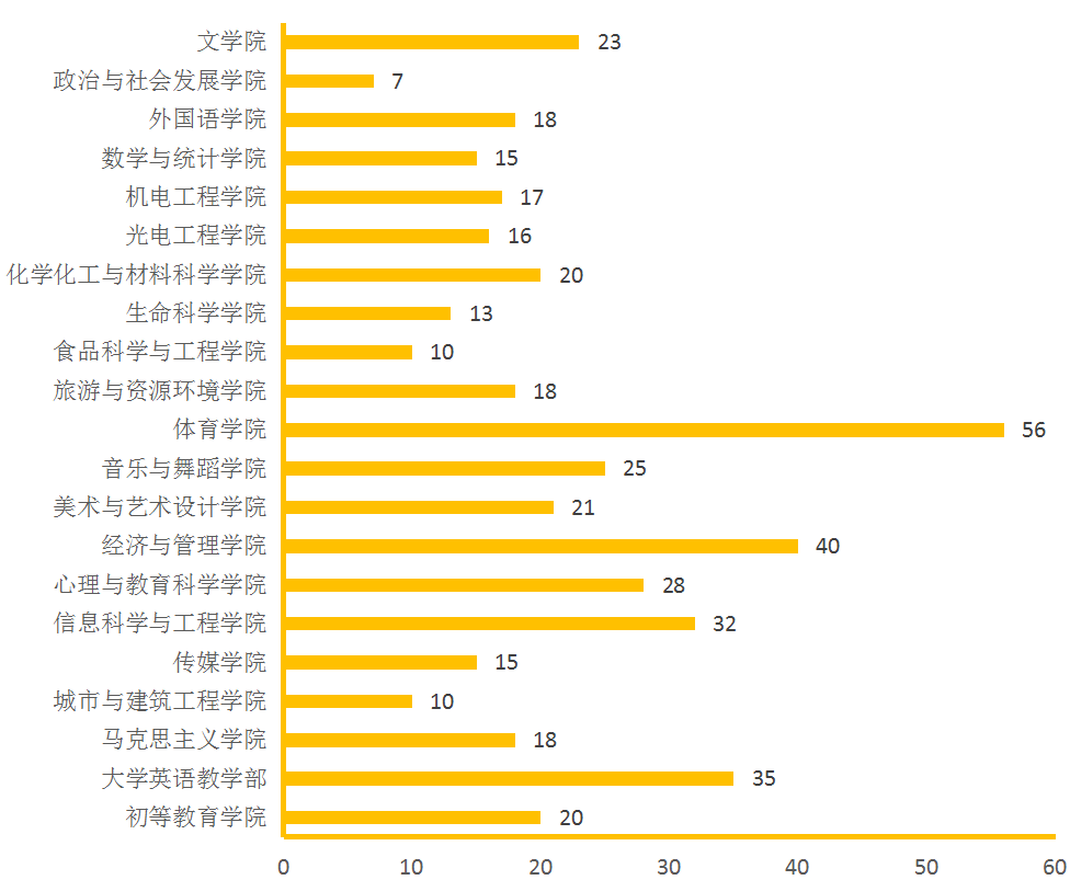 图4.各院(部)4月16日线上授课教师数(人次)分布图