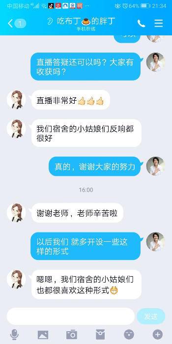学生在同步spoc学习过程中,以老师知识输出为主,缺乏与老师之间面对面的互动和交流,虽然通过QQ群进行答疑,难免还会遇到一些疑惑和问题,针对这种情况,开展了钉钉直播“答疑课堂”的教学方式。针对教学重点和教学难点在学生中进行前期调研,对于普遍性存在的问题和难点进行直播答疑,这种形式既能够充分利用优质的同步spoc资源,又能够集中有效的解决学生的问题,在学生中反馈较好。