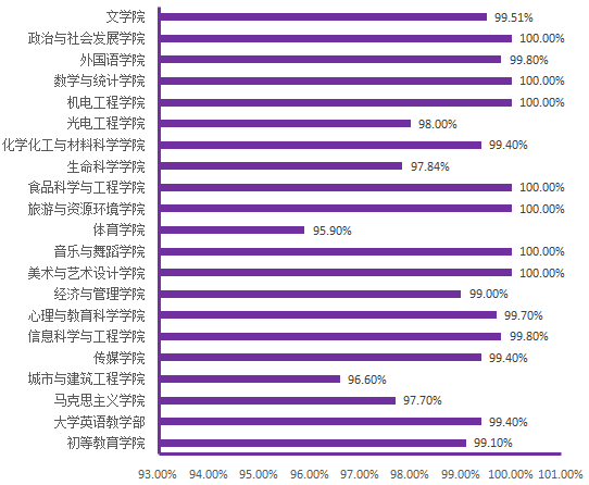 图6. 各院(部)4月10日线上学生上课率分布图
