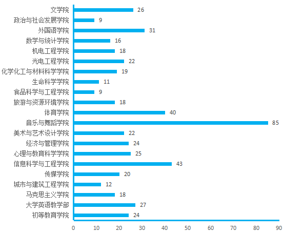 图4.各院(部)4月8日线上授课教师数(人次)分布图