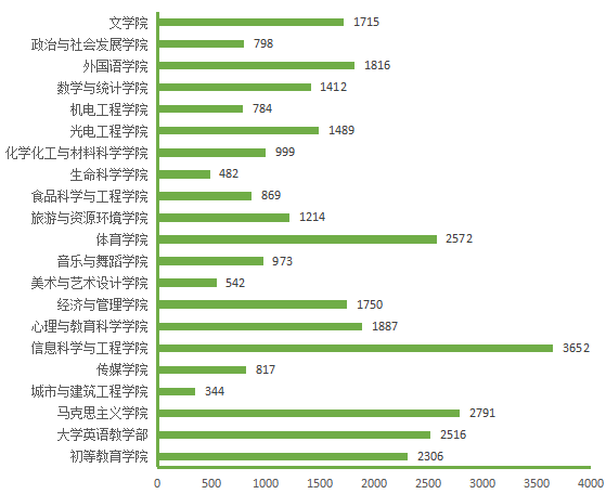 图5. 各院(部)3月30日线上授课学生数(人次)分布图