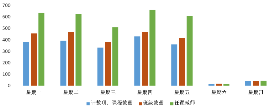 一周来,线上教学课程1093门、达3100门次;参与授课教师数824人,涉及教学班级周和2206个,学生学习人次达163999;累计上线学习学生人次数占累计应上线学习人次数比例为99.20%。