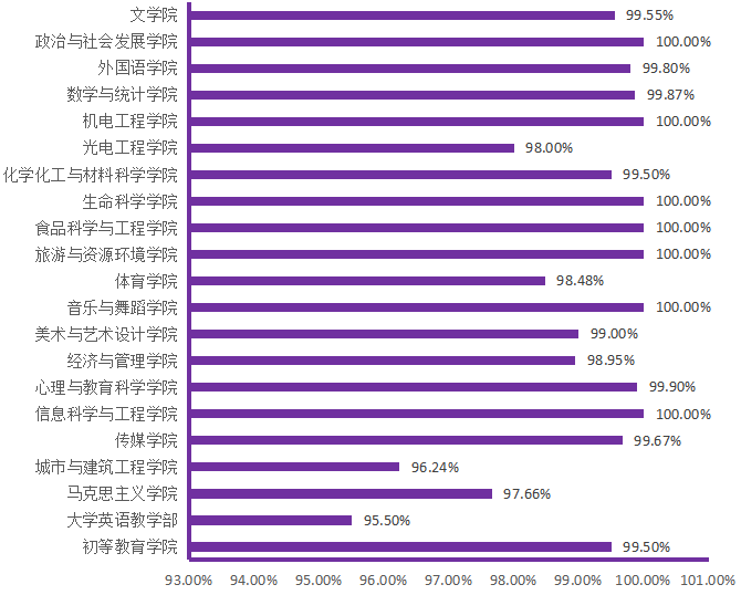 各院(部)的开课数、开课门次、班级数、学生数(人次)、教师数(人次)和学生上课率情况如下图所示: