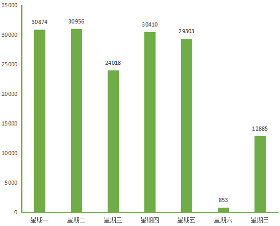 图5. 3月9日-3月15日期间线上学习学生数(人次)分布图