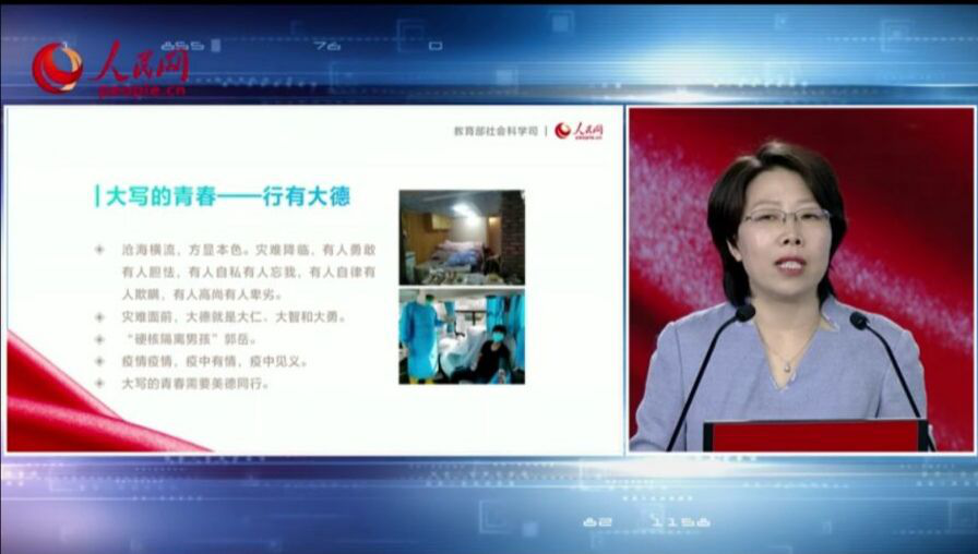 在这次战“疫”里,让人眼前一亮的就是00后,同样她们也得到了冯秀军教授的赞美,冯教授称赞他们的青春是战“疫”里“破茧成蝶”的青春,因为他们有乐观心态,所以出现了防护版“小天鹅”,方舱版“火红的萨日朗”。冯教授还讲到自强不息使得中华文明五千年薪火相传,爱国是最大的责任担当,而责任是中华民族生生不息的精神密码。