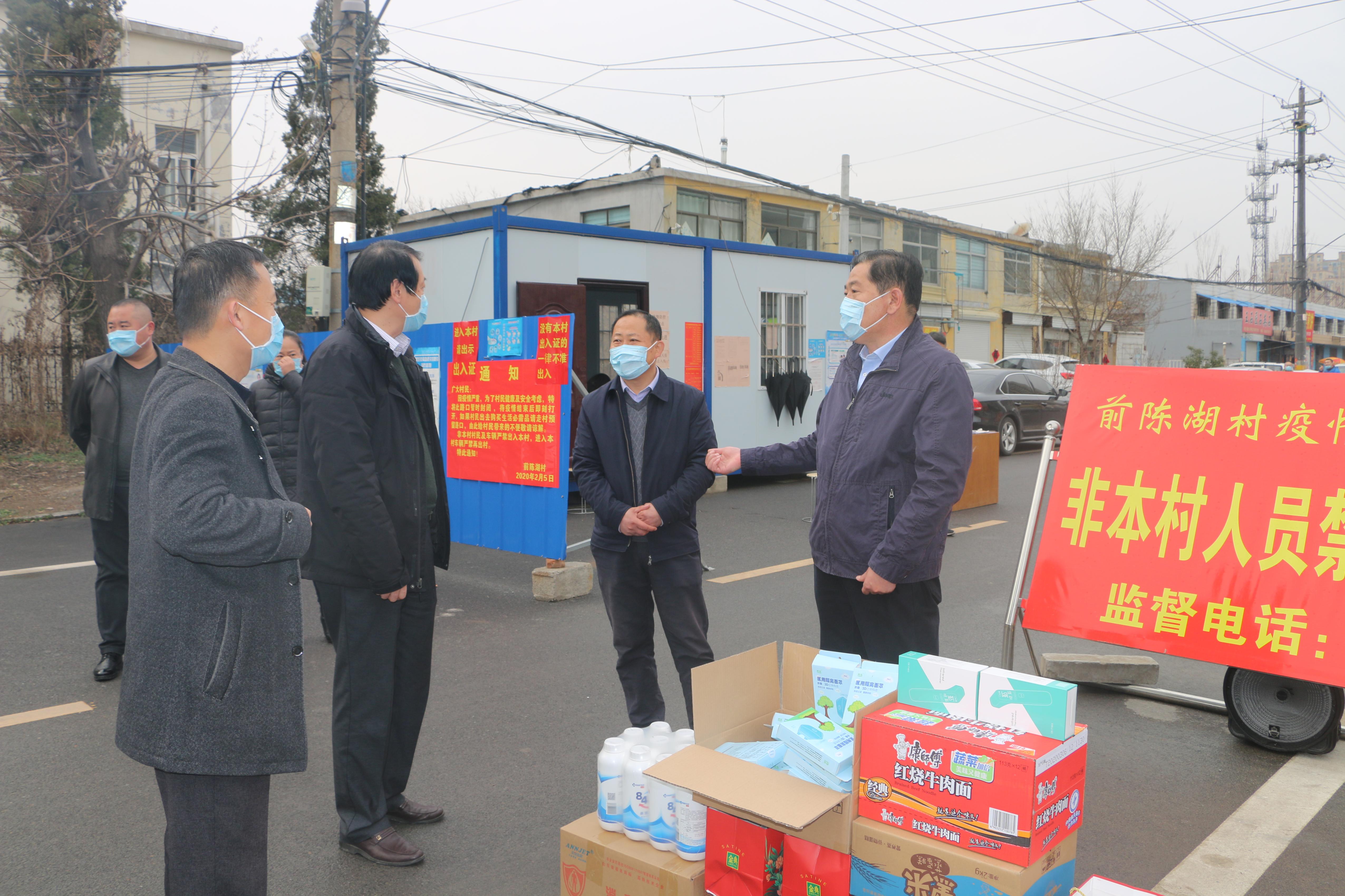 3月13日下午,我校省派“四进”工作组在校党委副书记曾宪明的带领下,到枣庄市市中区永安镇安侨社区、枣庄市市中区永安镇前陈湖村、骏腾快速病理系列产品研发与生产项目建设基地走访慰问防疫一线工作人员并捐赠防疫物资。