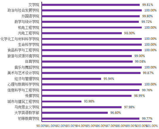 各院(部)的开课数、开课门次、班级数、学生数(人次)、教师数(人次)和学生上课率情况如下图所示: