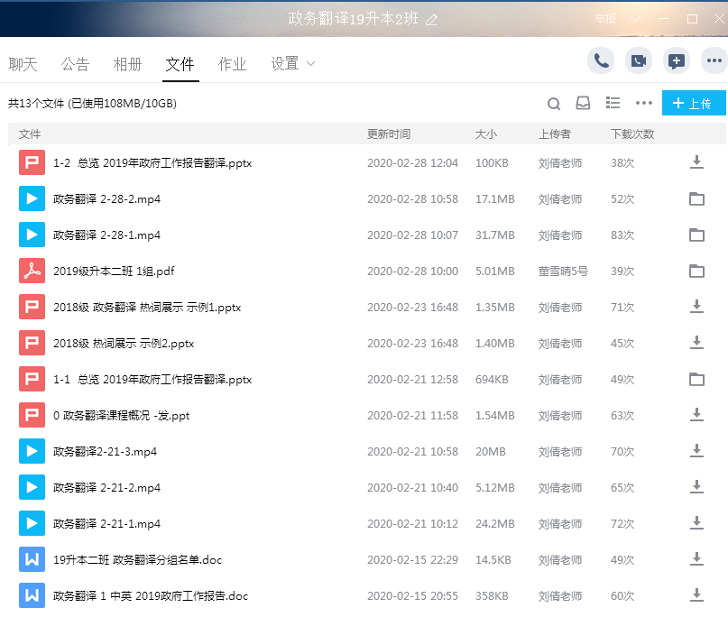 课后,任课教师把上完的课件及时传到群文件中,让学生及时下载复习巩固。开学第三周,通过询问学生对这种教学模式的建议,学生都很满意,因为可以反复观看,而且老师及时解答。