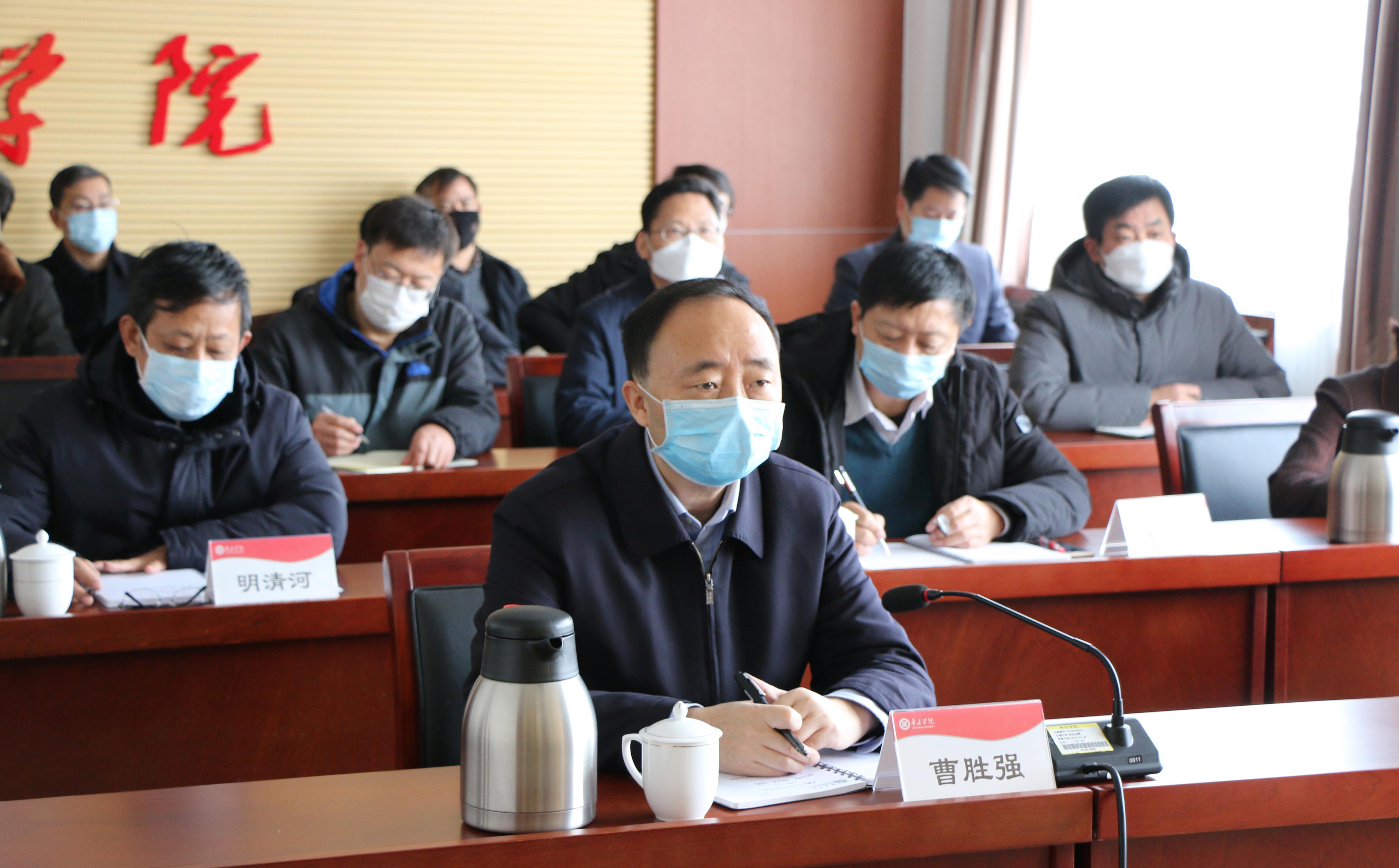 办公室、组织部、宣传部、统战部、纪委、学生工作处、人事处、教务处、发展规划处、科技处、社科处、计财处、招生就业处等部门负责人参加了视频会议。