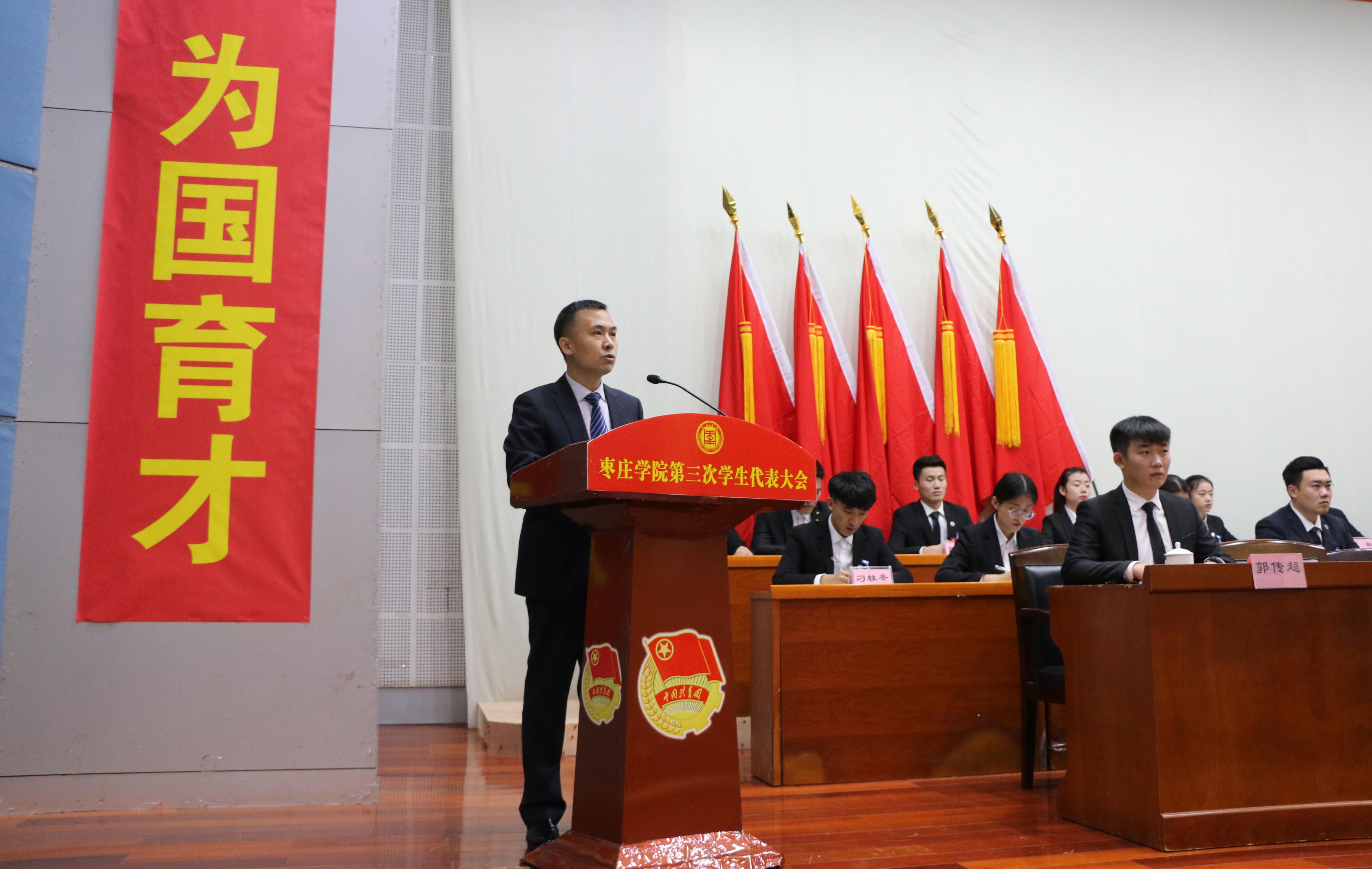 校团委书记袁俊现代表共青团枣庄学院委员会发言,要求学生会认真总结经验和成绩,进一步明确发展方向和目标,激发内生动力和活力,切实增强自身吸引力和凝聚力,更好地代表广大同学,服务广大同学,当好学校联系广大同学的桥梁和纽带。