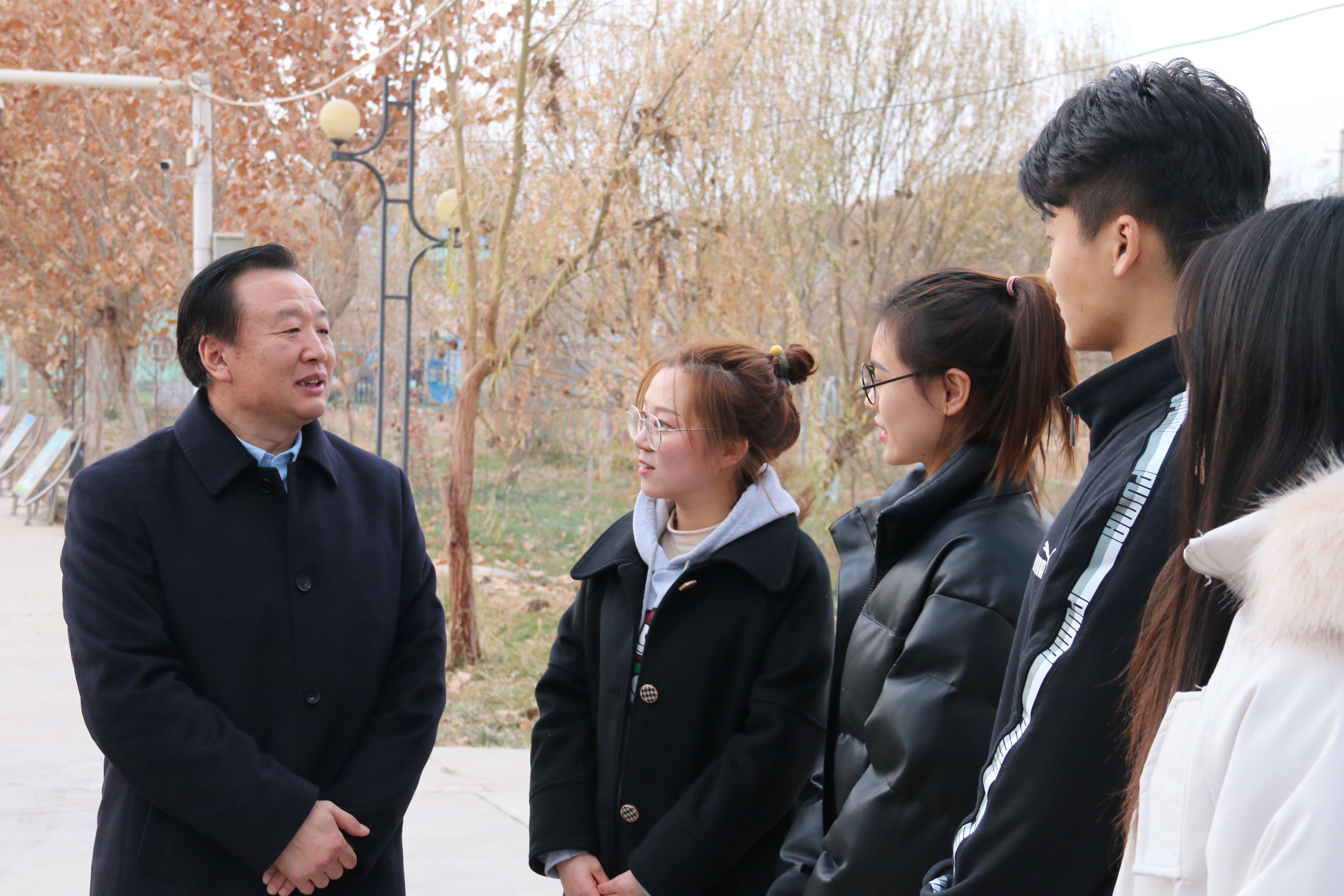 12月9日下午,校长李东一行到喀什地区疏勒县看望我校援疆实习支教师生。山东省援疆工作指挥部党委副书记、喀什地委组织部副部长邓泽宇,东营市援疆工作指挥部党委书记、指挥、疏勒县委副书记曹永湖,山东省援疆指挥部干部人才组副组长、喀什地区教育局党组成员、副局长崔升平,东营市援疆工作指挥部副指挥、疏勒县委常委、副县长杨凯,东营市援疆工作指挥部财务民生组副组长、疏勒县教育局副局长李志福等同志陪同看望和调研。