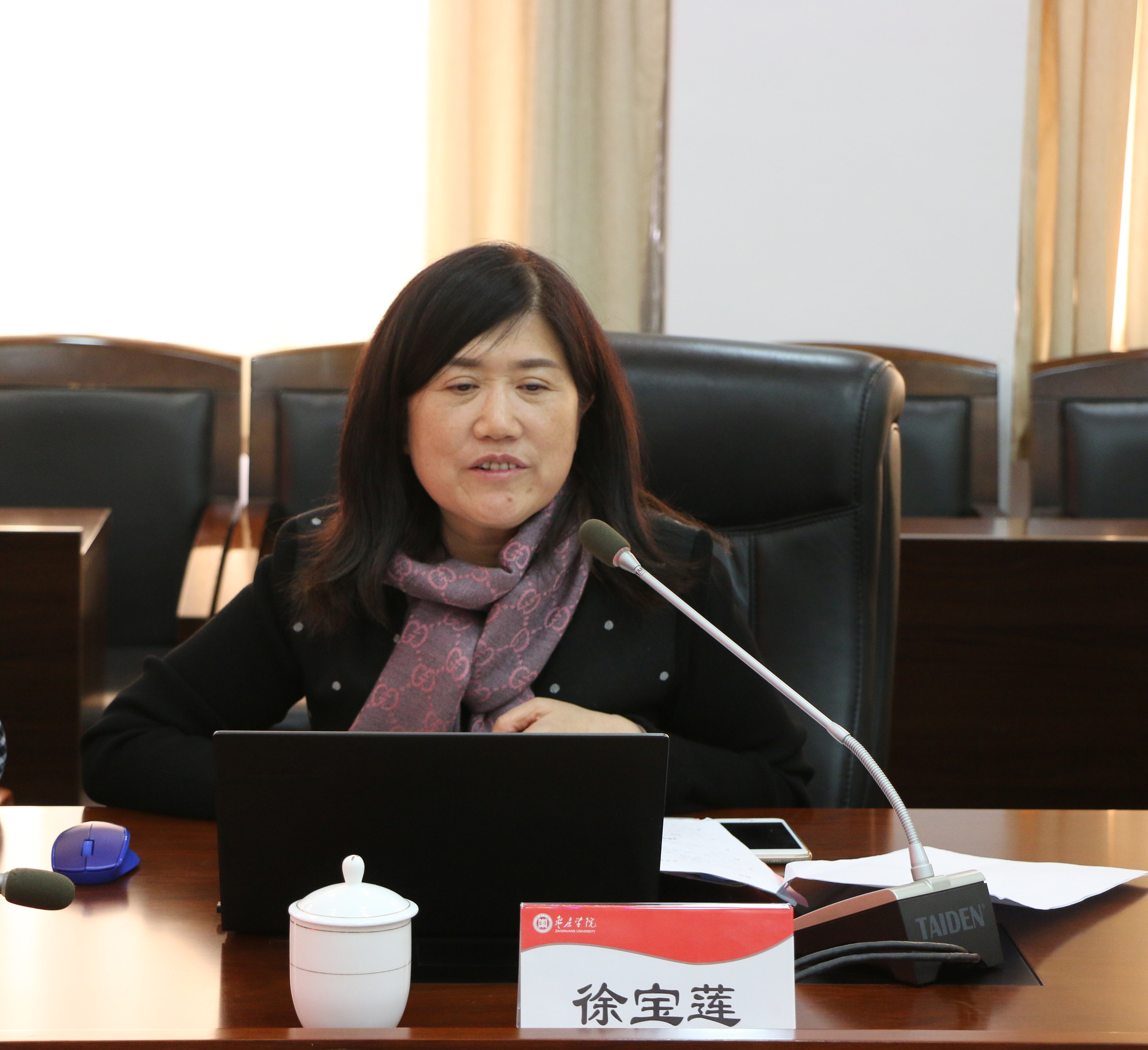 徐宝莲对我校的办学情况和管理水平,尤其是对产教融合、校企合作办学和援疆实习支教等工作给予高度赞扬。徐宝莲简要说明了省发改委关于此次高校教育培养成本监审工作的整体工作任务和省内部分高校完成监审工作的情况,重点介绍了学校各部门的任务及监审人员的具体分工,并对此次监审实地审核工作提出具体要求。她指出此次监审工作意义重大,时间紧、任务重,希望各部门积极对接,全力配合,提供全面完整、准确翔实的基础数据和资料,并对需要说明的特殊情况进行补充说明。