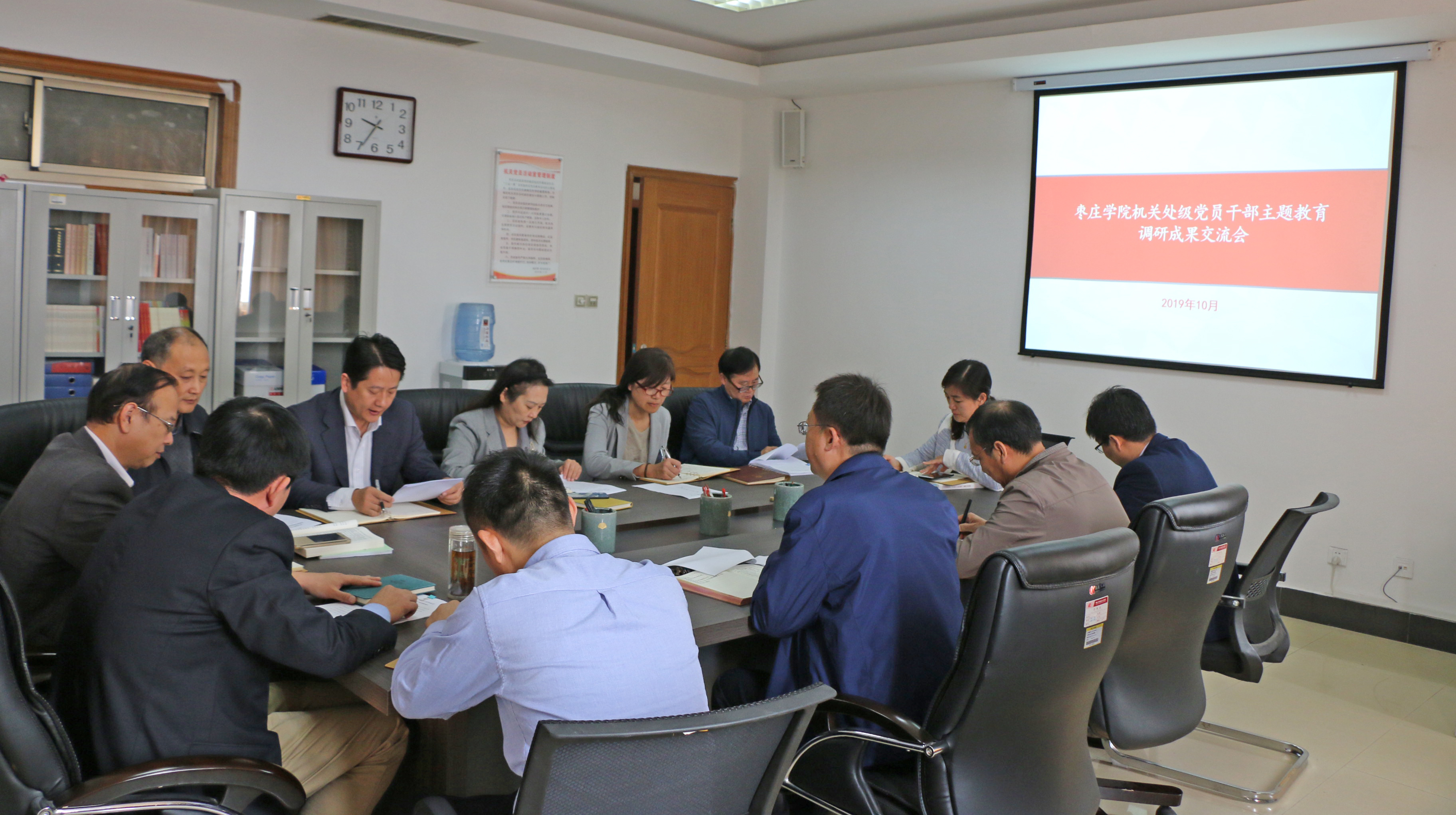 根据我校“不忘初心,牢记使命”主题教育工作计划安排,10月24日,我校机关党总支分四个小组分别举行了“不忘初心、牢记使命”主题教育调研成果交流会,相关部门副处级以上干部参加。