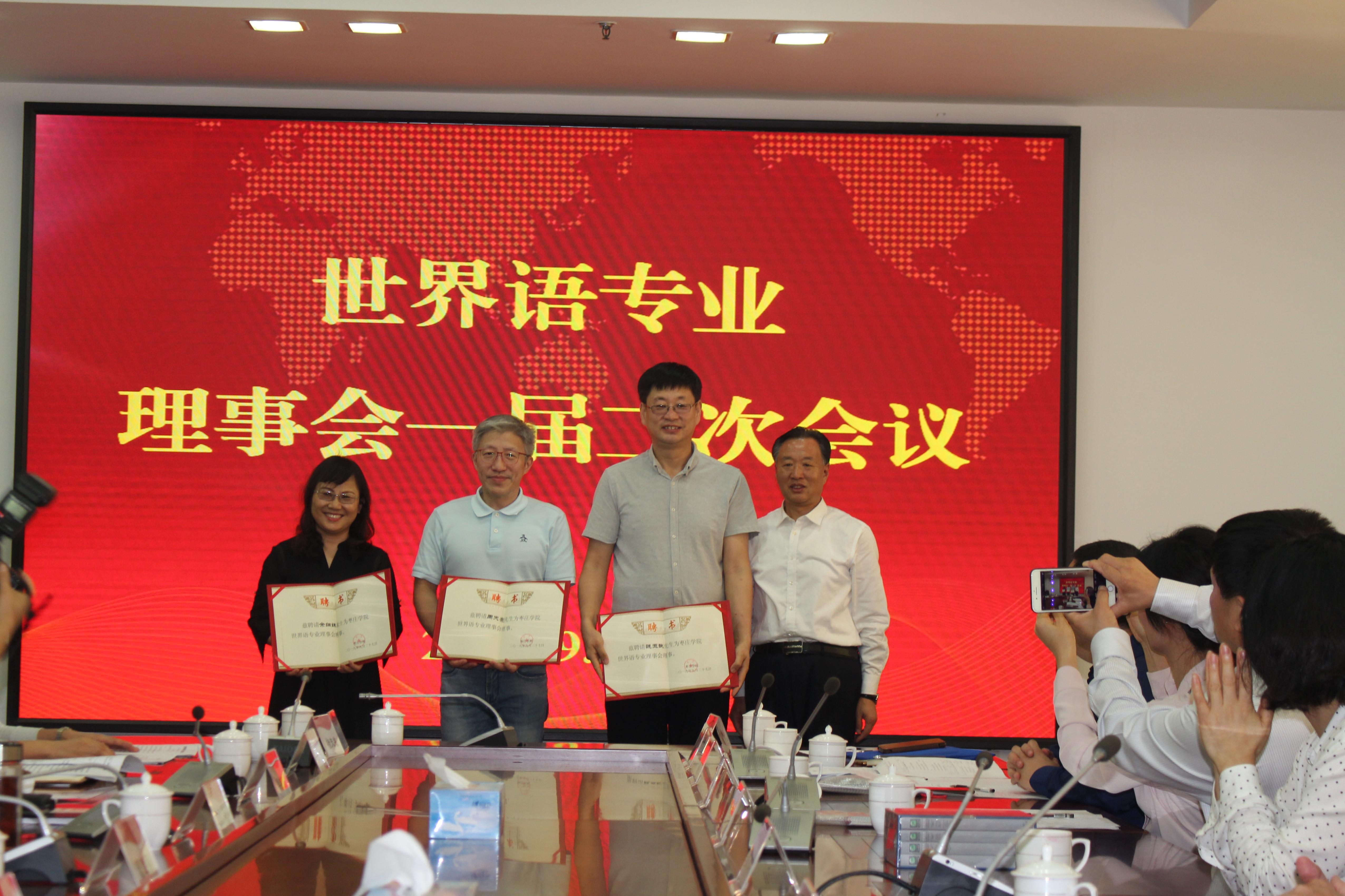 会议首先审议通过了聘请拉格纳尔·鲍德松先生为我校世界语专业理事会名誉顾问,审议增补了周天豪先生、魏玉斌先生、余细妹女士为枣庄学院世界语专业理事会理事,校长李东分别颁发了聘书。