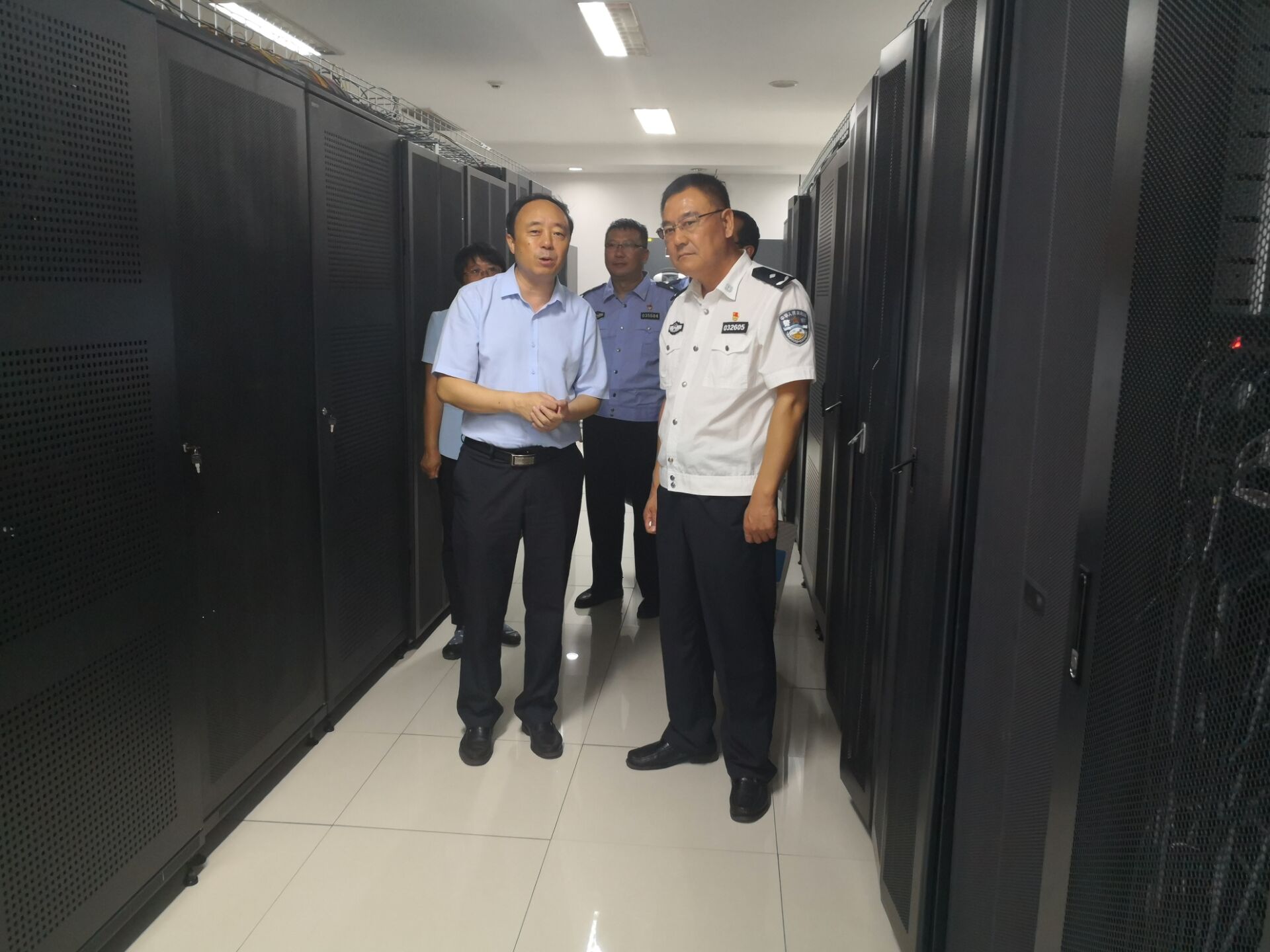 座谈会后,双方领导同志一起查看了学校网络核心机房,对我校信息系统进行了全面检查。网络中心主任介绍了机房建设、核心安全设备及安全策略、网络与信息安全日常工作等情况。