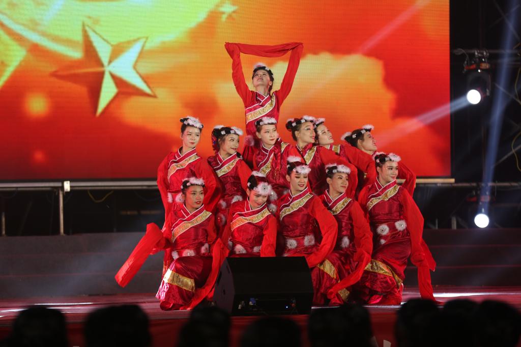 晚会中,我校援疆实习支教团还通过视频向新生表示欢迎,并与现场观众一起祝福祖国繁荣富强。来自全国25个省市的新生代表登台用家乡方言推介家乡,礼赞枣院,赢得阵阵喝彩。演出在全场高声齐唱《歌唱祖国》中达到高潮,现场红旗飘扬,歌声震天,嘹亮的歌声唱出了枣院人心中的豪迈,唱出了对美好新时代的期待与憧憬,更唱出了对祖国繁荣昌盛的真诚祝福。