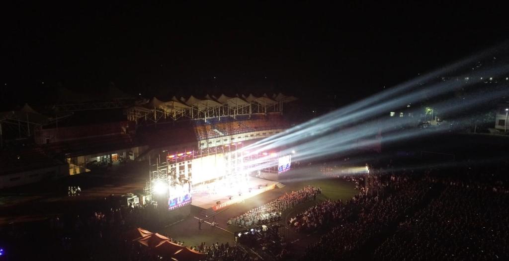 70年风雨兼程,披荆斩棘,成就伟大;新时代放飞梦想,祝福祖国,再创辉煌!9月17日晚,枣庄学院“辉煌七十载 筑梦新时代”庆祝中华人民共和国成立70周年暨2019年迎新生文艺晚会在学校体育场举行,枣院师生用歌声和激情致敬伟大的新时代,向中华人民共和国成立70周年献礼。全省第二批“不忘初心 牢记使命”主题教育省委第二巡回指导组领导、学校党政领导、师生代表及2019级全体新生上万人共同观看了演出。