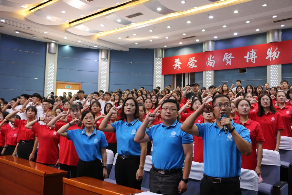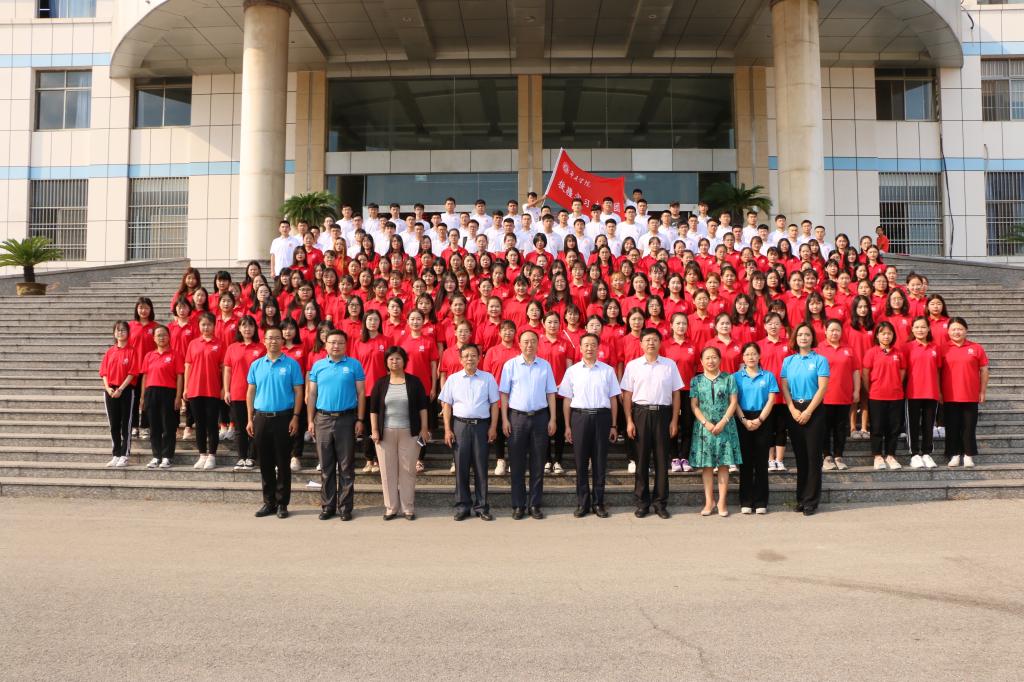 8月31日下午,我校在综合楼报告厅举行2019年秋季援疆实习支教师生出征仪式。党委书记曹胜强讲话,校领导李东、李目海、韩素玲、李丽清出席,办公室、宣传部、教务处、学生处、团委、招生就业处负责人,二级学院党政负责人、辅导员代表,2019年春季援疆支教学生代表和2019年秋季援疆支教团全体师生参加仪式。出征仪式由副校长明清河主持。