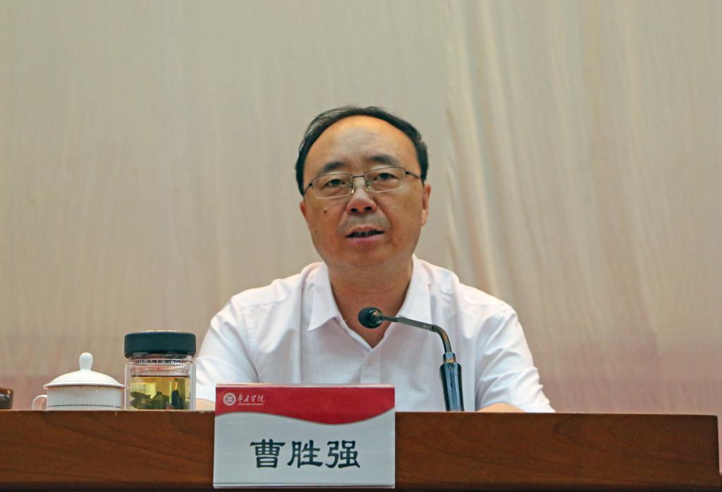 曹胜强在会上做了题为《坚决落实立德树人根本任务,全面推进教育教学与人才队伍建设,努力书写枣院高质量发展奋进之笔》的讲话。曹胜强强调,做好今后一个时期学校的人才培养和本科教学工作,要正确认识和把握高等教育使命,切实增强立德树人责任感和使命感。坚持正确办学方向,落实立德树人的根本任务;构建“三全育人”新格局,营造立德树人良好氛围;坚持党的全面领导,把牢立德树人的舆论导向。要深刻把握新时代高等教育新要求,着力提升人才培养能力和水平。坚持以本为本,促进内涵发展;坚持以人为本,促进协同发展;坚持以师为本,促进科学发展;坚持以校为本,促进特色发展。要全力抓好各项工作任务落实,奋力谱写新时代应用型本科教育新篇章。强化学习,提高认识转作风,把思想和行动统一到全国、全省教育大会精神上来;解放思想,强化担当抓整改,推进体制机制改革向纵深发展;凝心聚力,创新举措抓落实,奋力书写新时代枣庄学院奋进之笔。