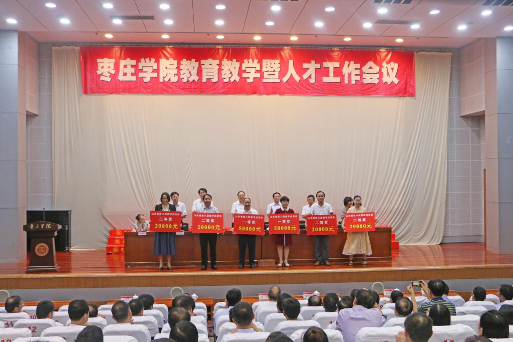 党委副书记曾宪明宣读了我校《山东省教育厅关于公布山东省第八届高等教育教学成果奖获奖名单的通知》《关于公布第三届、第四届、第五届、第六届山东省高校青年教师教学比赛获奖人员名单的通知》《枣庄学院关于2018年考研优秀组织单位表彰的决定》《中共枣庄学院委员会关于表彰2018年人才引进工作突出贡献单位和先进单位的决定》等表彰文件。大会对获奖代表进行了现场颁奖。