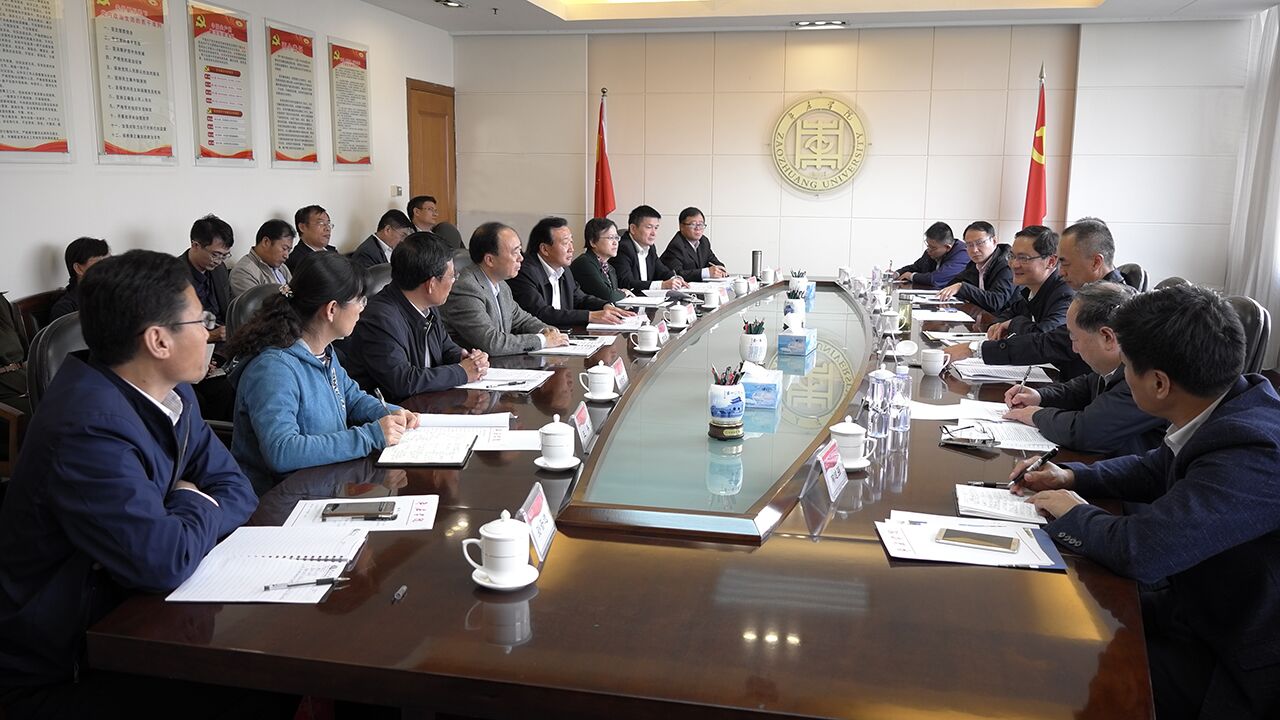 报告结束后,双方在综合楼八楼会议室举行座谈交流。曹胜强代表学校对夏云杰一行表示热烈欢迎,对曲阜师范大学长期以来给予我校的支持和帮助表示衷心感谢。曹胜强指出,我校以高水平应用型大学建设为目标,硕士学位授予单位对学校长远发展具有重要意义。夏校长的报告具有很强的针对性和指导性,我们要根据硕士学位授予单位条件要求和学校实际,全面部署、全力推进学校硕士学位授予单位立项建设工作,力争实现在师资队伍、高水平科研团队、高层次人才等方面建设上的突破;注重凝练,打造新亮点,在巩固加强原有学科特色基础上,紧密对应山东省十大产业,最大限度地实现专业对接产业。相关职能部门要做好详细规划,对照授予单位申请条件制定责任清单,实行挂图作战,对建设工作持续跟踪,保证全校上下切实把思想和行动统一到硕士学位授予单位立项建设工作中来。