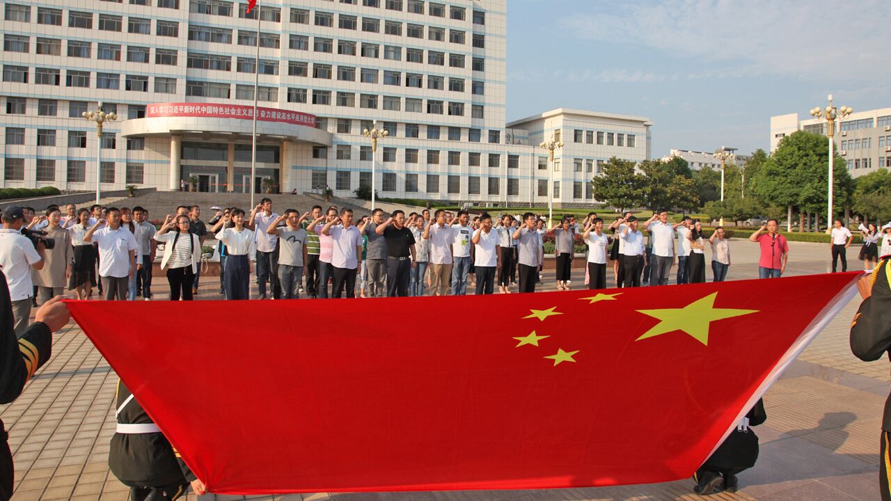 座谈会结束后,全体新入职教师在综合楼前面向国旗,庄严宣誓,郑重承诺履行教师职责、践行教师誓词。