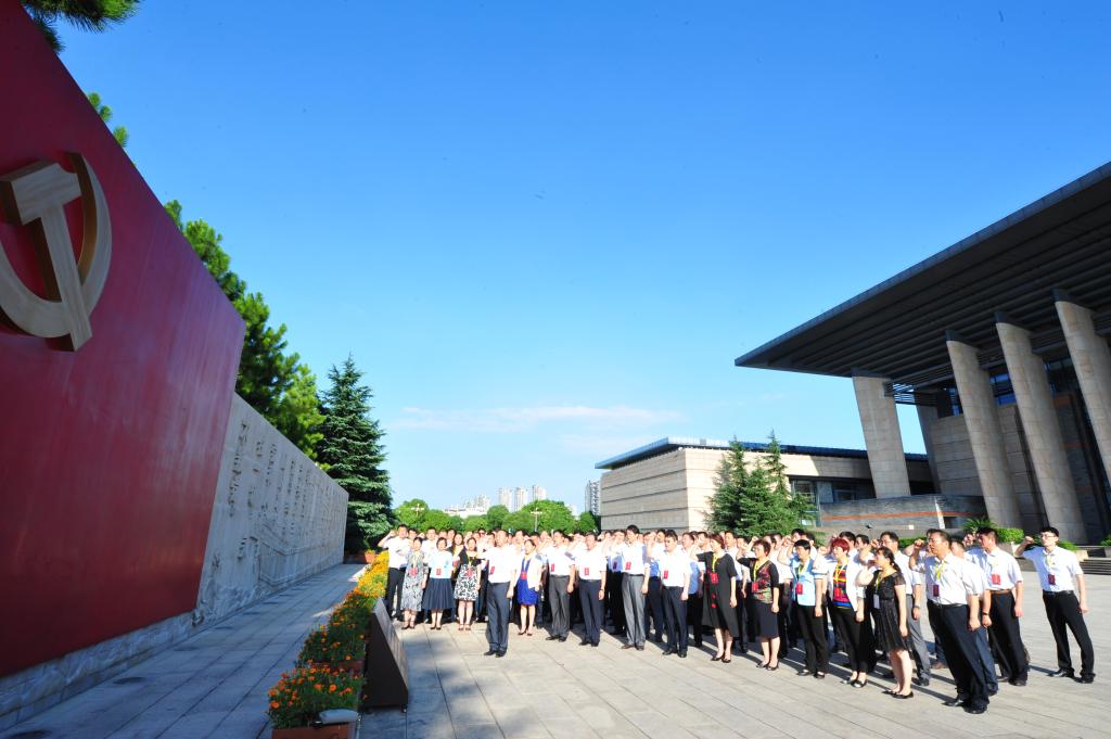 之后,参训干部来到南湖革命纪念馆宣誓墙前,由曹胜强书记领誓,面向党旗重温了入党誓词。