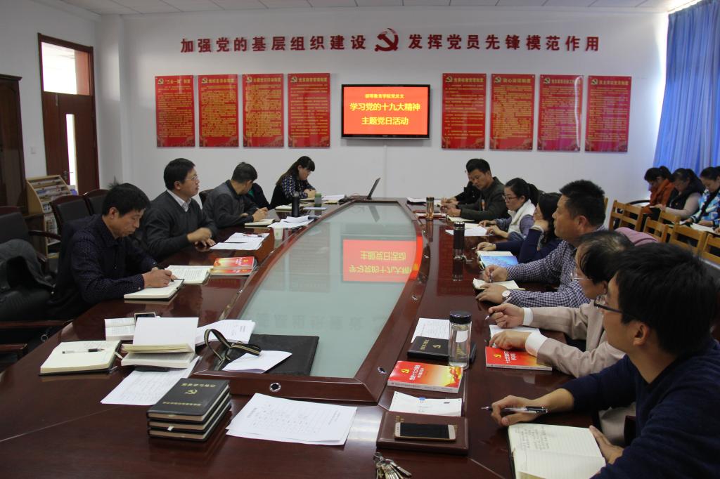 根据双周三主题党日活动安排,初等教育学院11月8日下午组织党员集中学习党的十九大精神。党委委员、副校长李目海为其组织关系所在的初等教育学院全体党员进行党的十九大精神专题辅导。