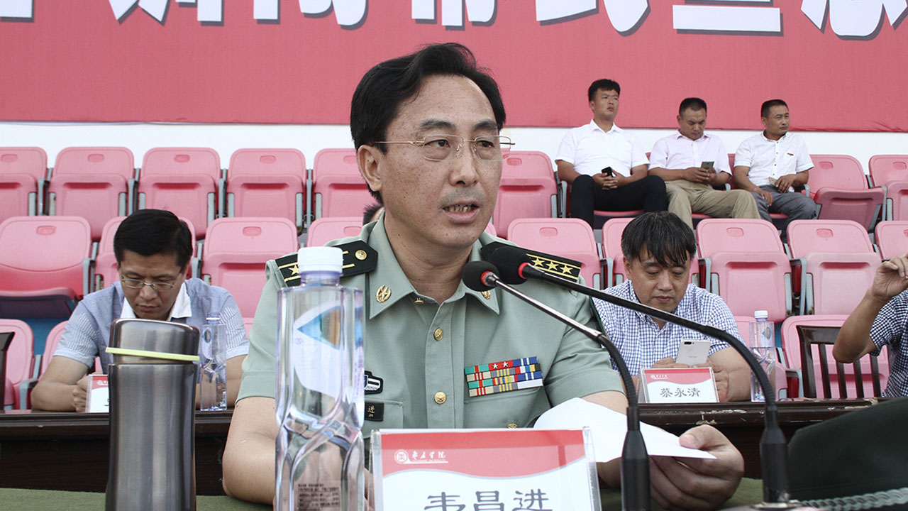 枣庄军分区政委韦昌进在会上做了热情洋溢的讲话。他代表枣庄军分区向为军训付出辛勤汗水的教官和老师们表示衷心感谢,向顺利完成军训任务的新生表示热烈祝贺!韦昌进说,在学校开展军事训练是党中央、国务院和中央军委做出的伟大战略举措,军训作为高校素质教育的重要组成部分,是大学生在校期间履行军役义务,接受国防教育的重要帮手,是学校育人的重要途径之一。看到同学们迈着整齐的步伐喊着洪亮的口号意气风发地走过主席台时,我的心情十分激动。我为你们的朝气蓬勃而欣慰,也为你们的拼搏自信而高兴。这是全体师生和承训官兵共同努力的结果,充分展示了枣庄学院师生的风采。今年是中国人民解放军建军九十周年,人民军队站上崭新的起点。我们要通过军训弘扬中华民族从戎尚武的传统美德,树立居安思危、忘战必危的军事观念,弘扬我军光荣传统和优良作风,培养同学们的精神品格,增强民族自信心和自豪感。同学们肩负着中华民族伟大复兴的历史重任,需要驰而不息的努力,走好人生的第一步。希望同学们把军训成果尽快转化为刻苦学习磨练自己的精神动力,增强身体素质,用昂扬的斗志和饱满的精神迎接党的十九大胜利召开。