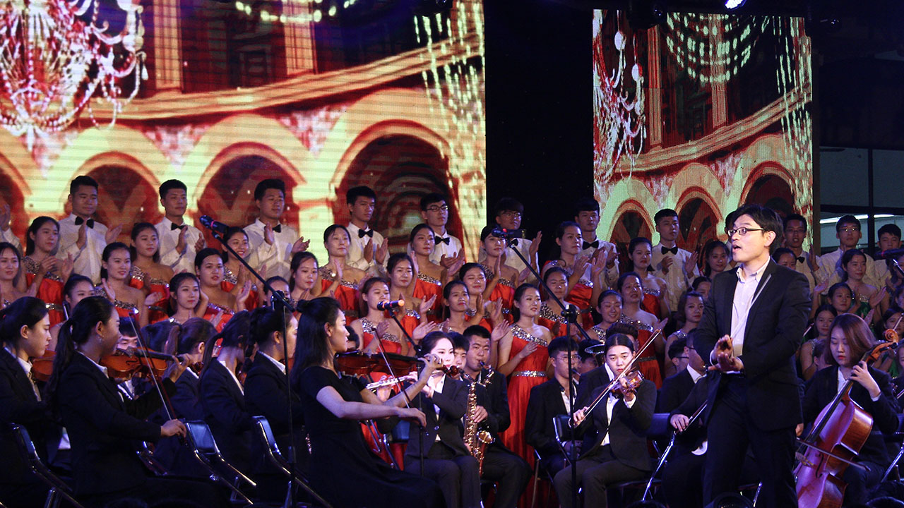 伴随着轻松欢快的交响乐《欢腾的枣院》《花好月圆》,晚会拉开了帷幕。晚会始终贯穿着“喜迎十九大 共筑中国梦”这一主题,节目内容活泼向上、形式丰富多彩、表演精彩绝伦。一曲《阳光路上》勉励新同学面对大学生活,要积极进取勇于开拓;现代舞《魅力青春》,或激情、或婉约、或奋进,充分展现了广大青年学生的良好精神风貌;随后《群英汇枣院》《防骗新说》等节目以生动形象的表演、诙谐幽默的语言,引得全场同学们的阵阵掌声;最后,晚会在气势磅礴的交响乐《匈牙利舞曲》《拉德茨基进行曲》中圆满落幕。