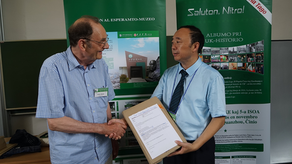 大会期间,曹胜强校长全程参与“中国日”活动,进行了旨在宣传枣庄学院和世界语博物馆的主题演讲,前国际世界语协会主席意大利人Renate Corrsetii先生、国际世界语协会执委智利人Jose Antoni先生、韩国人Lee Chongqi、日本世界语协会前主席Hori Yasuo等国际世界语运动著名人士出席活动,活动还吸引了不少青年学生现场咨询到枣庄学院留学或者任教的情况。参会期间先后与十多个国家、部分国际组织和地区组织的参会代表进行专业交流,商洽合作事宜。与波兰、立陶宛、保加利亚和韩国等国的世界语领导人进行了单独会见,就联合出版《世界语大辞典》、互派教师共同培养世界语人才、派学生代表团出席明年首尔国际世界语大会等事宜达成初步共识。接收了来自墨西哥、巴基斯坦、捷克、波兰、保加利亚、立陶宛等国家世界语者的捐赠。国际世界语教师协会主席Mireille Grosjean通过其代表表达了向世界语博物馆捐赠教师协会资料的意向。