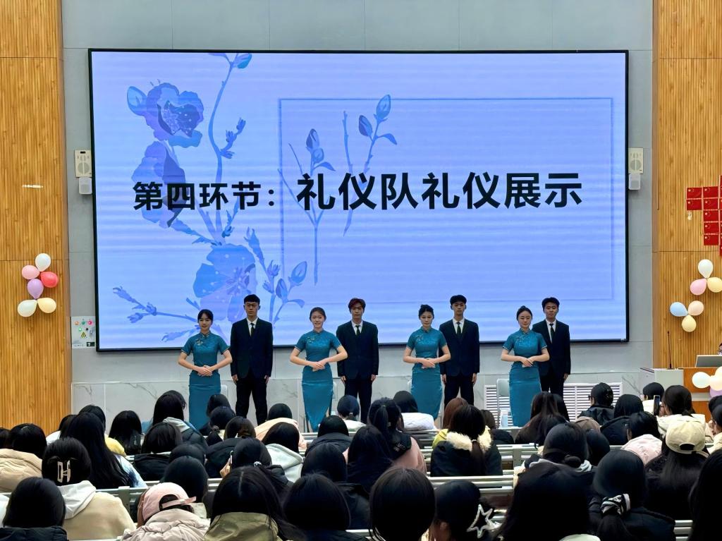 风采展示环节同样精彩纷呈:篮宝社团以矫健舞姿展现青春活力,礼仪队则以优雅举止诠释礼仪之美,赢得在场同学的阵阵掌声。此外,活动还特别设置了巾帼榜样学习环节,通过讲述杰出女性的励志事迹,激励同学们见贤思齐、奋发向上。最后,在“方寸之间、寄语未来”环节中,同学们亲手制作创意卡纸,用彩笔描绘青春愿景,将个人梦想汇聚成温暖的集体力量。