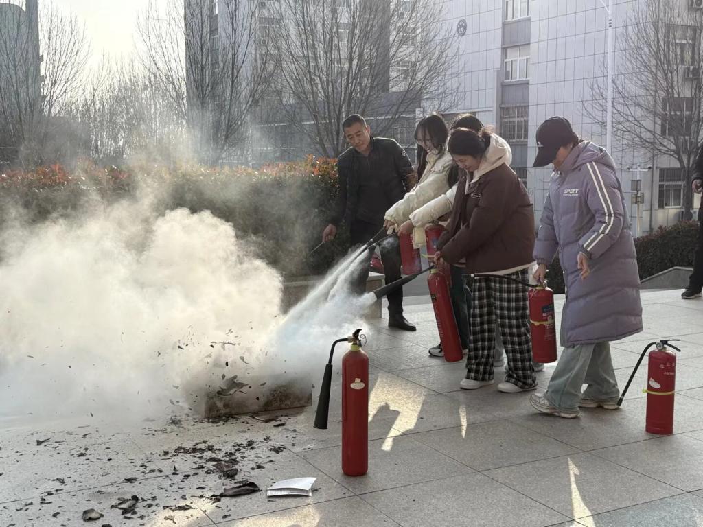 演练活动紧密围绕冬季防火特点,采用“理论讲解+实战演练”的模式展开。刘宝成老师结合校园实际,重点讲解了火灾预防、典型案例分析和应急处置等知识,特别强调了学生宿舍区域的用火用电安全规范,告知违规使用大功率电器、离开房间不关闭电源等行为的火灾风险,提醒大家时刻绷紧安全弦。在随后的实操环节,同学们按照“提、拔、握、压”的使用要领,亲身体验了灭火器的正确操作方法,有效掌握了扑救初起火灾的技能。